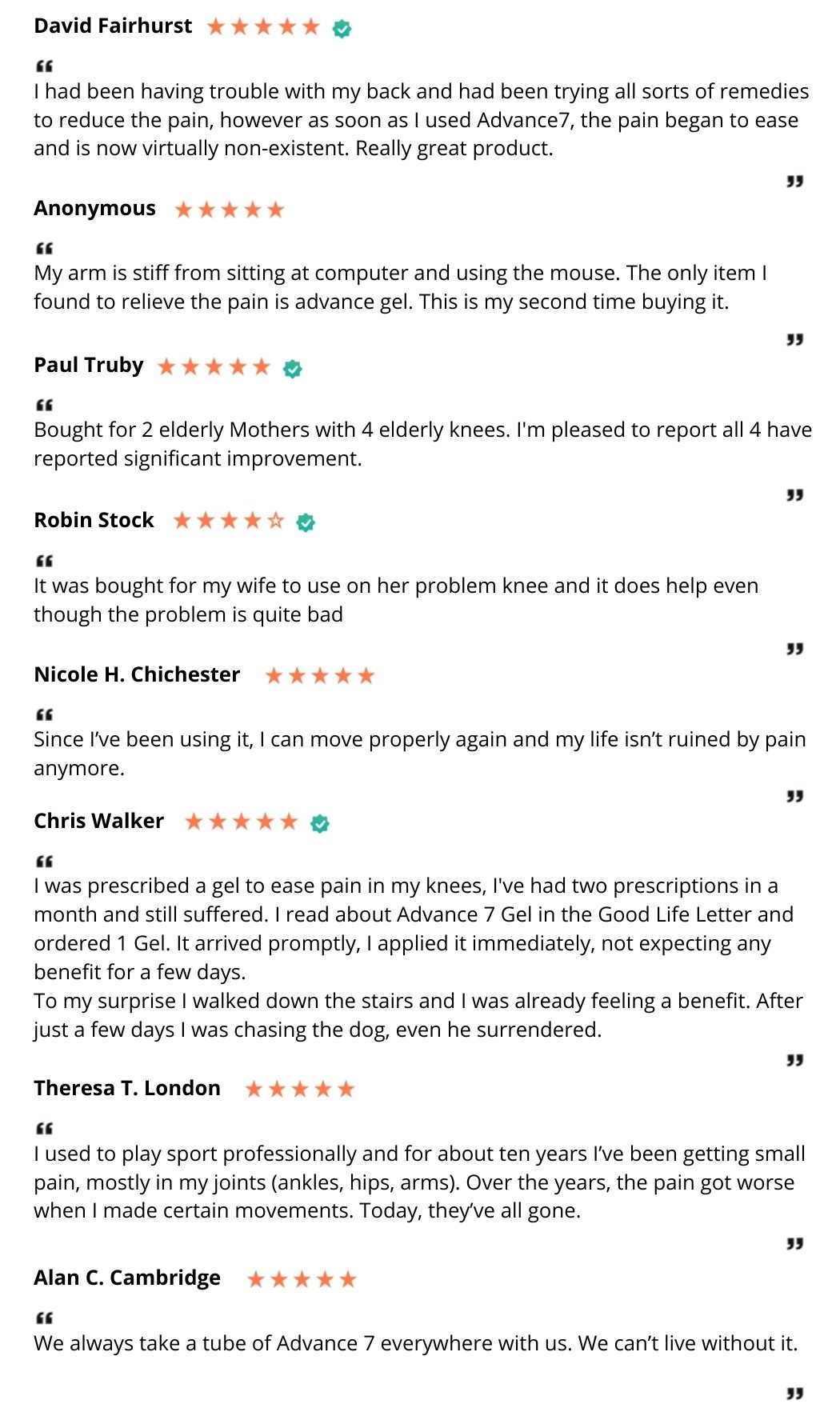 ADVANCE 7 GEL - Rub it into your skin for a minute or more to bring speedy easing of the pain, as well as long term improvements to your mobility by using it every day.