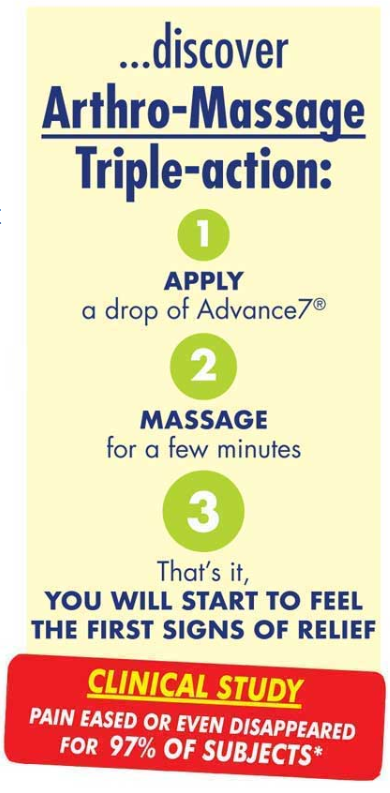 ADVANCE 7 GEL - Rub it into your skin for a minute or more to bring speedy easing of the pain, as well as long term improvements to your mobility by using it every day.